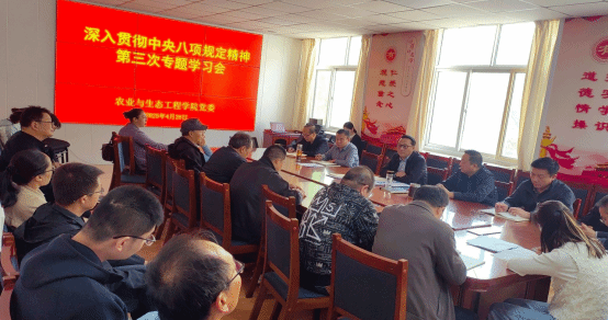 4 月 28 日,农业与生态工程公司党委召开深入贯彻中央八项规定精神学习教育第三次集体学习,公司党委理论学习中心组全体成员、全体教职工参加。