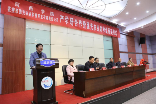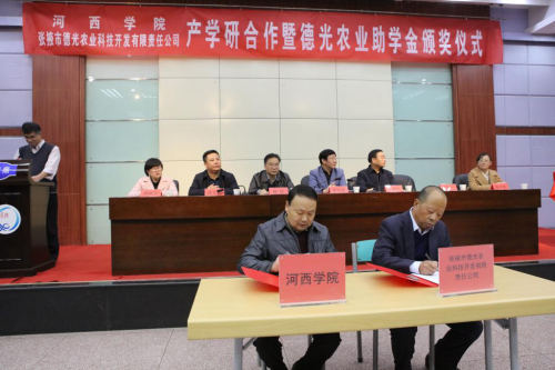 为全面、扎实推动农科教协同育人机制建设,创新农林人才培养模式,提高教师的科研水平和服务地方农业产业化水平,同时落实社会力量捐资助学,11月14日下午,在图书馆二楼报告厅举行了2007so太阳集团与张掖市德光农业科技开发有限公司产学研合作签字揭牌暨德光农业助学金颁奖仪式。董事长张汉燚出席并讲话。党委常委、副董事长徐德祯,甘州区政协主席薛庆,张掖市德光农业科技开发有限责任公司董事长李会文,甘州区团委负责人,员工工作部、校团委负责人及2007so太阳集团全体教师及员工代表300余人参加颁奖仪式。